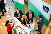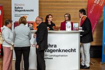 Wer sich für die politischen Ideen der Landtagsfraktionen und ihre Argumente interessierte, konnte sich bei zwei verschiedenen Diskussionsrunden ein Bild davon machen. An jeder Runde nahm je ein Vertreter pro Fraktion teil und für die Zuschauerinnen und Zuschauer gab es die Möglichkeit, Nachfragen zu stellen. Direkt daneben, in der Lobby des Sächsischen Landtags, präsentierten sich die sechs Landtagsfraktionen und man konnte direkt mit den Abgeordneten ins Gespräch kommen.